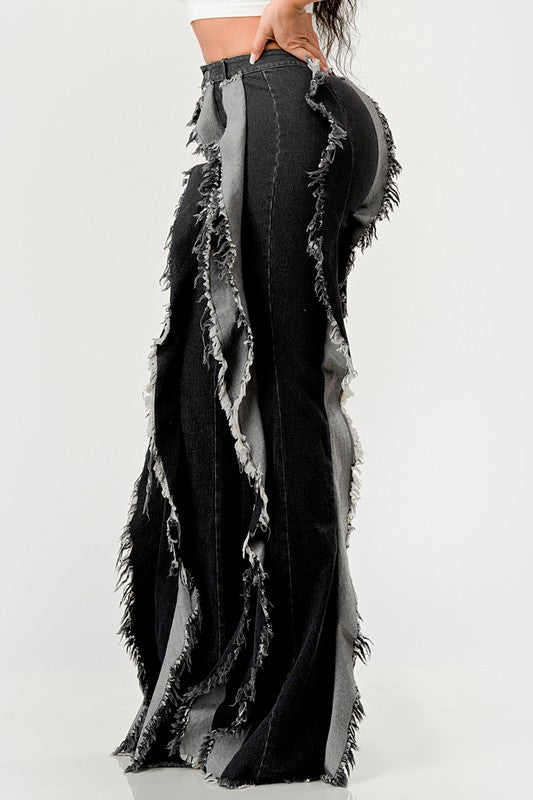 Distressed Denim Frill Jeans